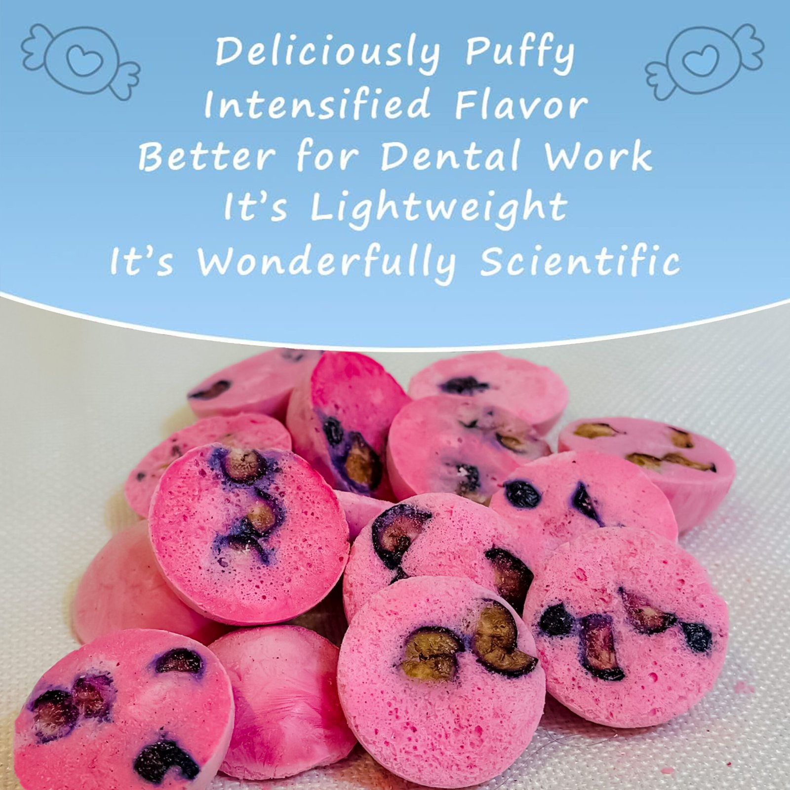 Enjoy the refreshing mix of rich strawberry flavor and natural blueberry in a sugar-free freeze-dried ice cream! 🍓🫐Light, crunchy, and delicious – a unique experience for fruit lovers.